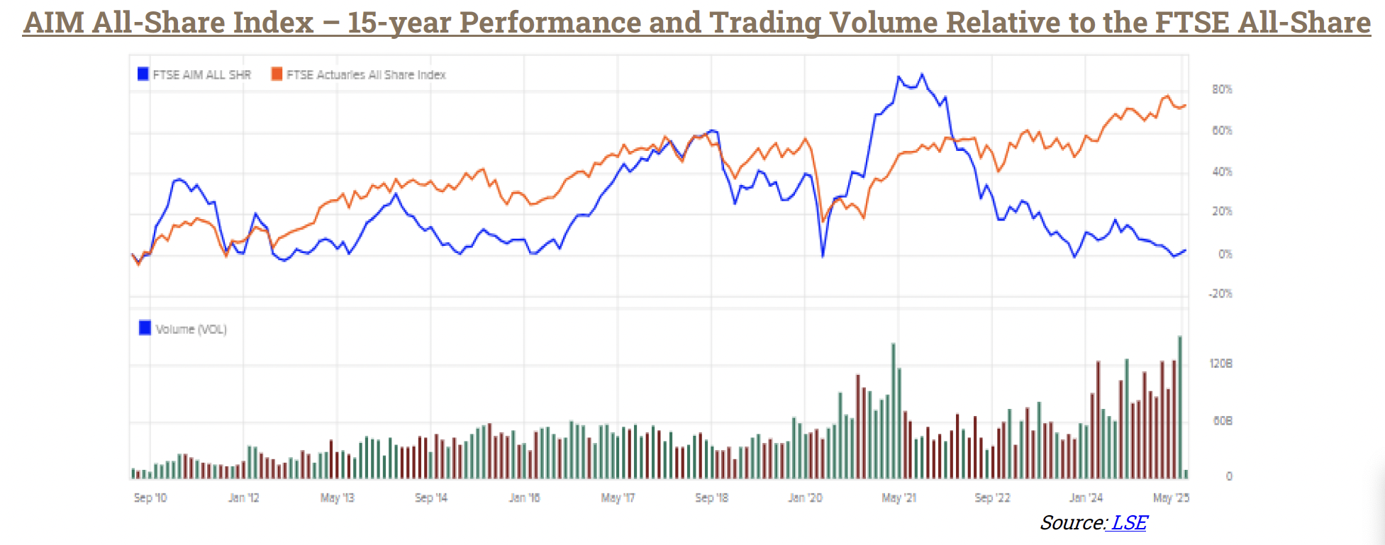 The situation, however, appears to have passed its worst and AIM now offers potential for a sharp rebound relative to the UK’s principal indices over the remainder of 2025.