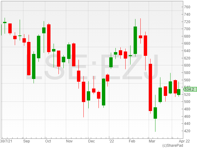 EasyJet shares were down 1.8% to 532.6p in early morning trading on Tuesday following the travel company’s release of an estimated £535 to £565 million pre-tax loss in its interim trading update for HY1 2022.