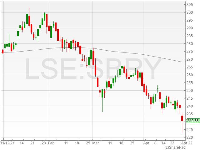 Sainsbury’s shares suffered a fall of 3% to 231.7p despite the company’s swing to a pre-tax profit of £854 million in 2021 from a pre-tax loss of £164 million in 2020.