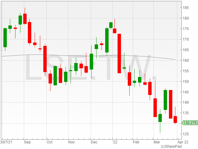 Taylor Wimpey share were trending down 3.5% to 130.1p as Nationwide Building Society said house prices had skyrocketed at their fastest rate of growth in 17 years by £33,000.