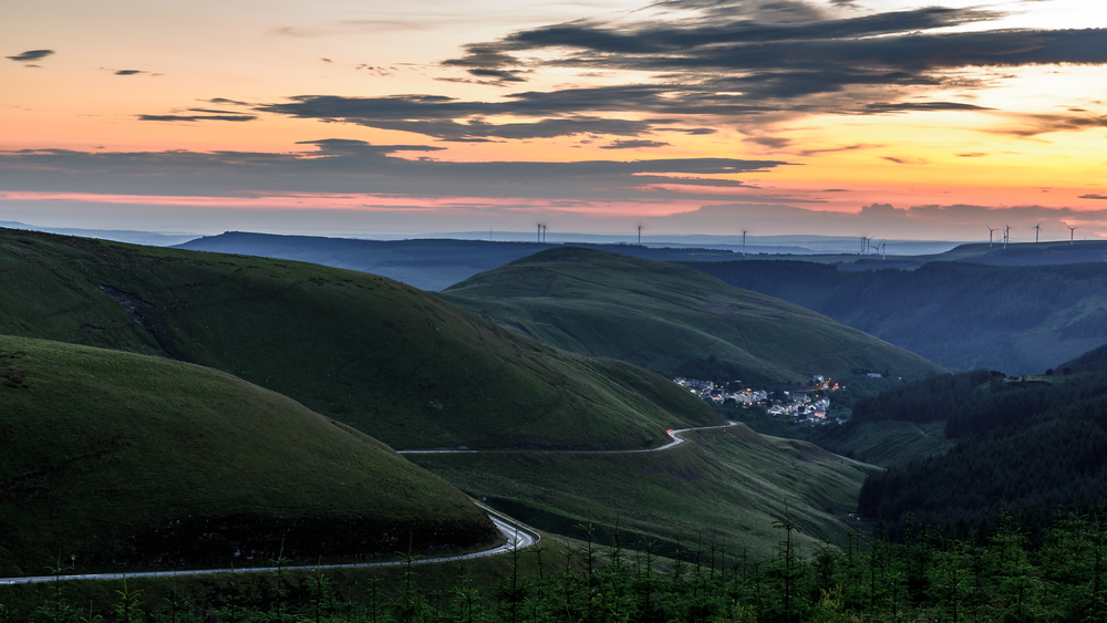Sunset,Over,The,South,Wales,Valleys,From,The,Bwlch,Mountain.