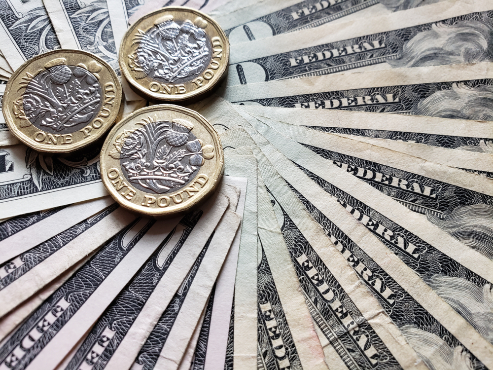 Coins,Of,One,Sterling,Pound,And,Background,With,American,Dollars