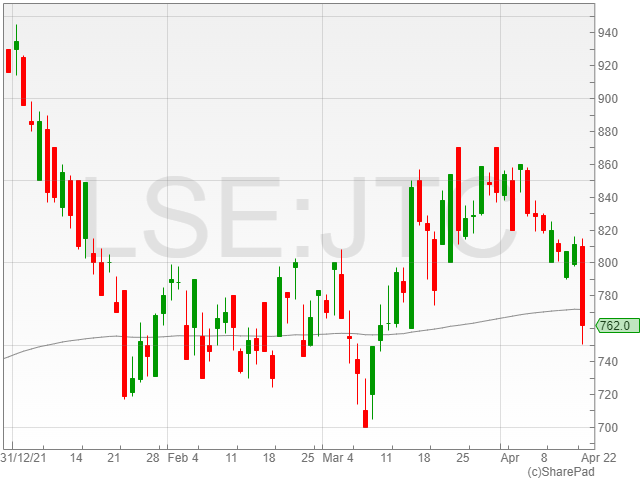 JTC shares saw a decline of 6.4% to 758p following the group’s 57.2% drop in operating profits to £9 million compared to £21 million last year.
