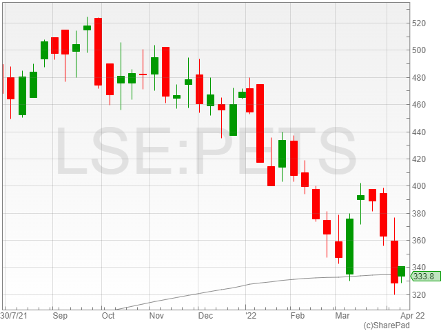 Pets at Home enjoyed a 1.5% rise to 333.7p on the back of Berenberg’s “buy” recommendation of the shares.