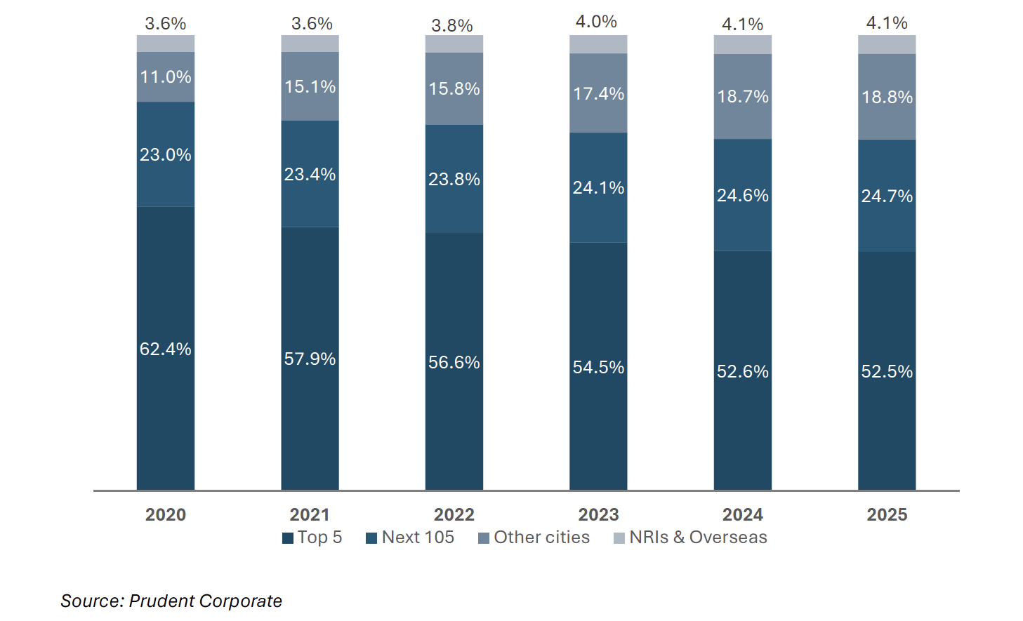 Reflecting the capital markets’ digital transformation, India’s top three brokers are all online/digital platforms: Groww, Zerodha and Angel One. As digital transactions accelerated, mutual funds expanded distribution networks nationwide, increasing participation from smaller towns and semi-urban areas.