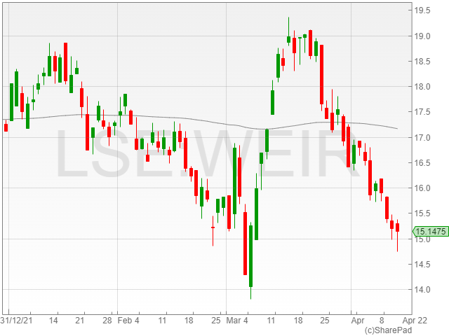 Weir Group shares were down 0.9% to 1,520p in early afternoon trading on Wednesday, after the company reported the completion of its $800 million refinancing for its main banking facility with a syndicate of 11 banks.